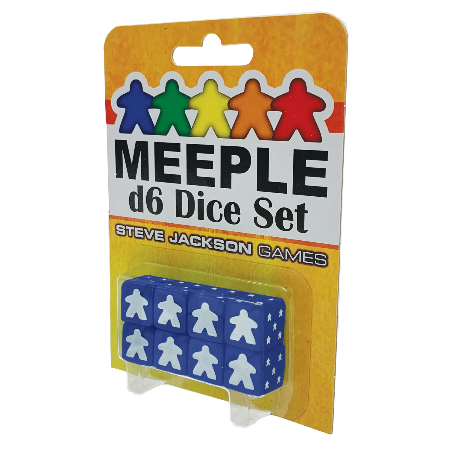 With a big meeple replacing the one pip, and little debossed meeplies on all the other sides, the Meeple d6 Dice Set blurs the lines between meeples and dice. For use with any game that requires standard six-sided dice.