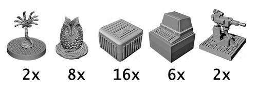 High-quality hard plastic 30mm scale miniatures, representing iconic elements from the 1986 film ALIENS™. Perfect for painters and collectors, or to enhance your table-top roleplaying experience. Includes two plastic sprues to build: 2x Facehuggers, 8x Eggs, 2x Sentry Guns, 6x Computer Terminals and 16x Crates