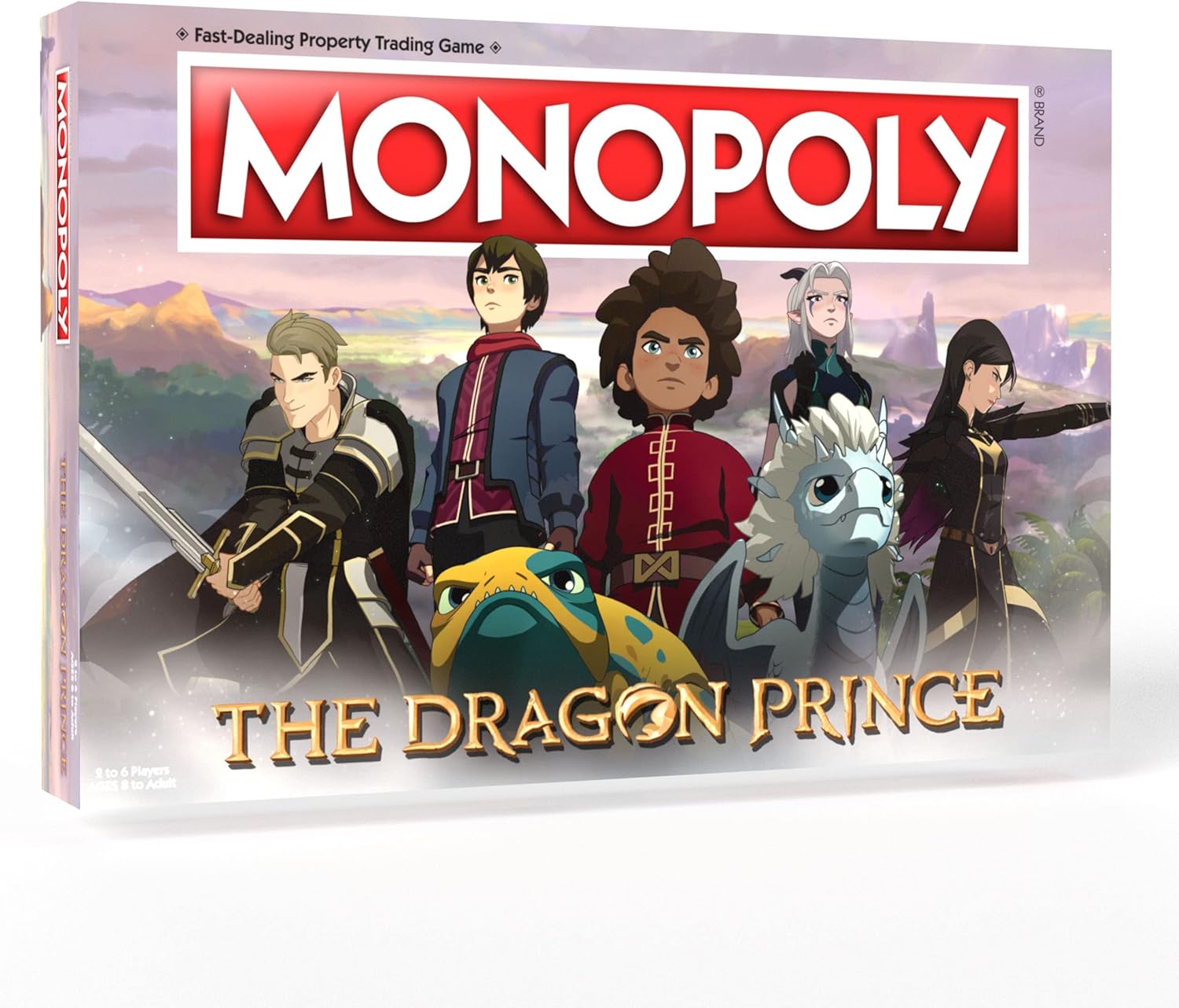 Explore the unpredictable twists and turns of your own adventure through Xadia with MONOPOLY: The Dragon Prince! Encounter your favorite characters from the beloved Netflix animated series as you interact with Ezran, Callum, Azymondias, and many more on a journey to fulfill your purpose. Destiny and Legacy determine your path as you take magical items around the board and acquire companions, building Bonds and Alliances along the way to accomplish the most successful mission!