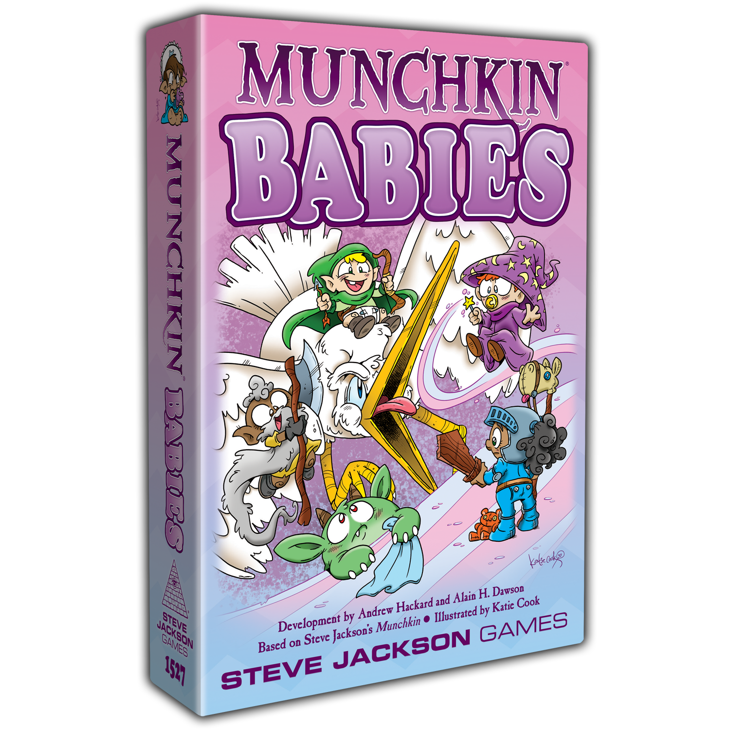 Munchkin Babies delivers 168 cards full of sweet, adorable baby adventurers . . . who are just as good at backstabbing and loot-grabbing as their elders from Munchkin. Play a cute Orcling, Dwarfling, Elfling, or Quarterling (half a Halfling). Go to preschool to learn your Class: Wiz Kid, Ankle Biter, Crumb Snatcher, or Holy Terror, and then arm yourself with the scariest items from the toy box: the Kazoo of Constant Whining, Kid-Safe Stabbinator, Blame-Resistant Pajamas, and of course, the Extremely Pokey Spoon. You must fight fearsome monsters such as the Jealous Kitty, the Hootin' Nanny, the Napmare, and, worst of all, the Pediatrician! Grab their treasure and crawl your way to Level 10!