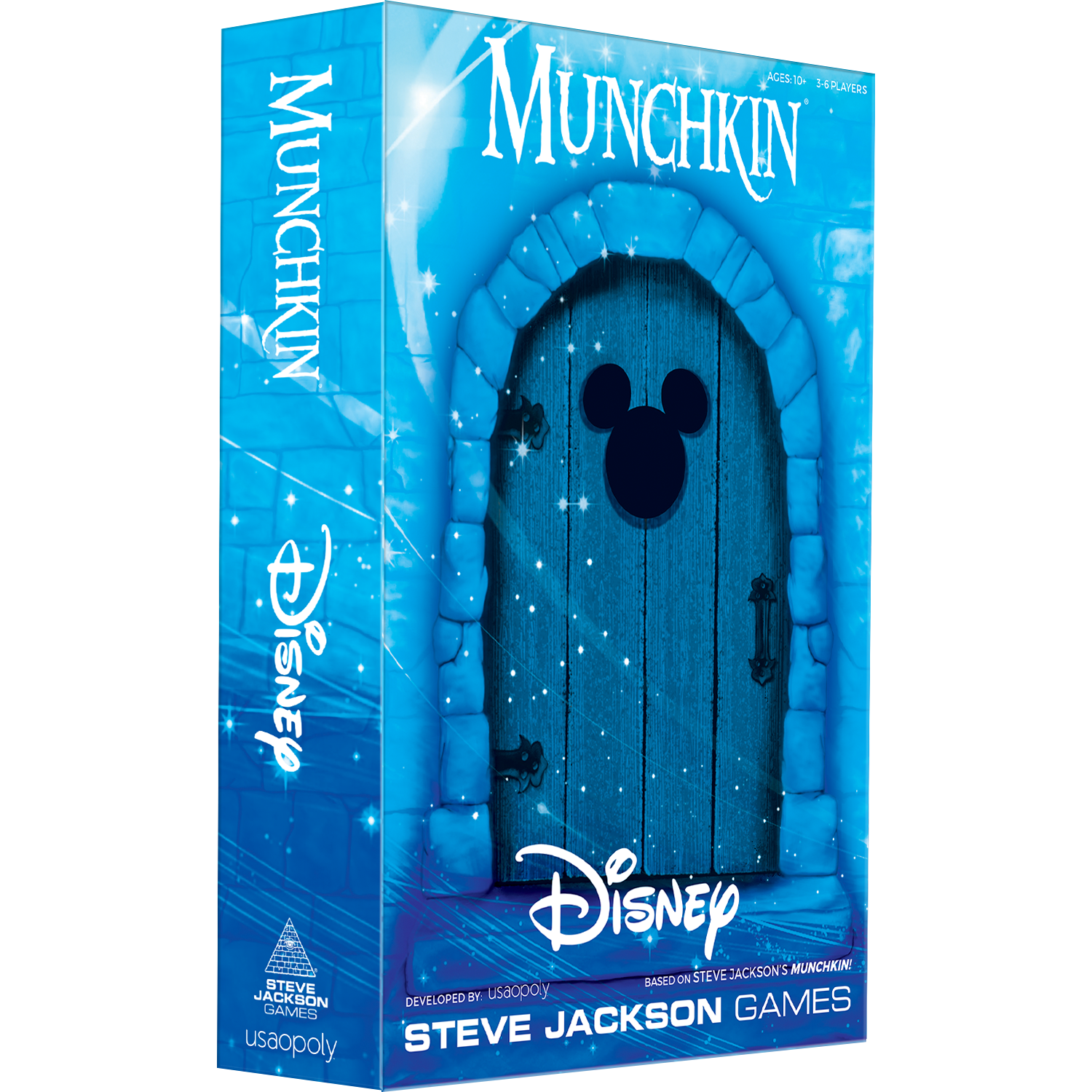 Munchkin: Disney combines the treasure-hunting, back-stabbing, and leveling-up fun of the best-selling card game Munchkin with timeless Disney characters, phrases, and objects. Kick open a door to encounter monsters like infamous villains Jafar and Ursula, while trying to avoid curses such as Forever Asleep and Poison! Obtaining the glorious treasure cards will fill your hands with bonus items, abilities, and allies including Maui's Hook, Magic Carpet, or Elsa, which can assist in combat, help, or hinder other players whose objective is also to reach Level 10.