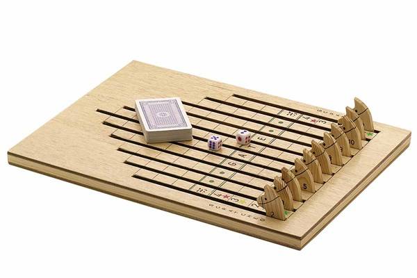The next player then rolls the dice and moves the matching horse up one slot. When the number of one of the scratched horses comes up, the player must put chips totaling the amount shown on the side of that slot that the horse is in.