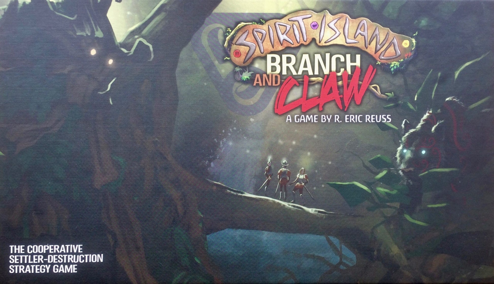 The Branch and Claw Expansion for Spirit Island, featuring two new Spirits (Sharp Fangs Behind the Leaves and Keeper of the Forbidden Wilds) and a new Adversary (France) as well as adding Events to the Invader Phase of the game!