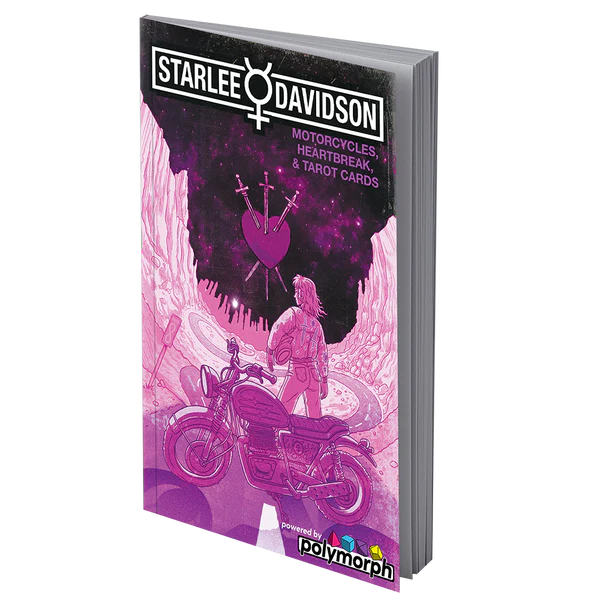 Starlee Davidson is a polymorph game of Tarot, Motorcycles, and Self Healing. A no prep TTRPG, the cards lead the story for The Oracle and the players as they take on different roles in a psychedelic explosion of mystery, mysticism, and motorbikes.