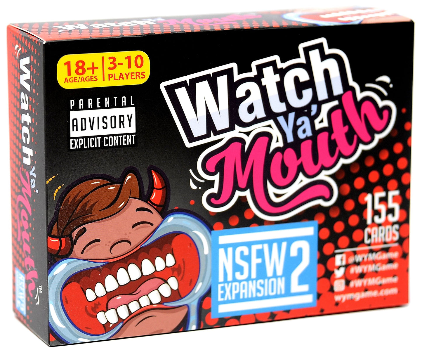 Watch Ya Mouth NSFW Expansion Pack #2 comes with 155 depraved, explicit phrase cards and 6 blanks (161 total cards). Our cards are strong, thick, and durable for years of hysterics and beer spills.
